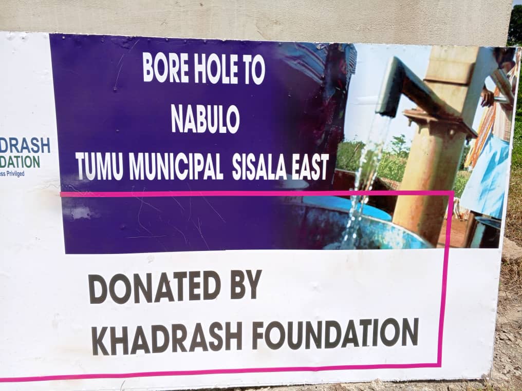 Khadrash Foundation has successfully installed a water borehole system in Nabulo,